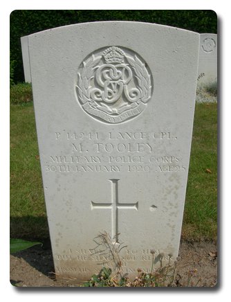 | Notes: | MFP. Awarded the 1915 Star, Victory and War Medals. First served abroad (1) France, 8/3/1915. Formerly Gnr. 112 Heavy Bty. Royal Garrison Artillery. No. 39244. Not listed in soldiers died. Inscription on gravestone: I shall go to him but he shall not return to me. From his sorrowing Mother. Died, Illness, Casualty Clearing Station, Cologne, Army Register of Soldiers' Effects, 1901-1929. Info from Pension Index Cards: Tooley, Michael, MFP, No. P/14241, Pte, 30/1/1920 Died, VDH and Nephritis. mother Annie Maria, 34 The Grove, Dorchester, age 54 years. Michael Tooley. |