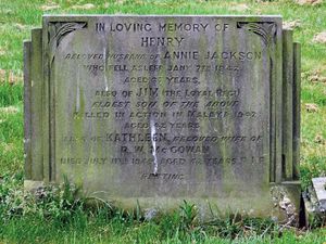 | Notes: | Shown as Loyal Regiment attached to CMP, Missing from Alhambra Cinema, Singapore 15/2/42, Cutts papers. He was born in Preston and resided on Coventry. Shown as 2 Loyal Regiment in CWGC roll. Inscription on private gravestone: In Loving Memory of Henry beloved husband of Annie Jackson who fell asleep Jan 7th 1942 aged 69 years. Also of Jim (The Loyal Regt) eldest son of the above killed in action in Malaya 1943, age 42 years. Casualty List 781/14, Malaya, Missing, 15/2/1942, shown on 2 Loyal Regiment List. Casualty List 966/18. corrections, List 781, Malaya, Missing, 15/2/1942, casualty should read 23-15/1/1942, shown on 12 Loyal Regiment List. Casualty List 1971, previously reported Missing 23-25/1/1942 now presumed killed in action, previous List 781, corrected by 966, 23/1/1942, shown on 2 Loyal Regiment List. Medal card not found. |