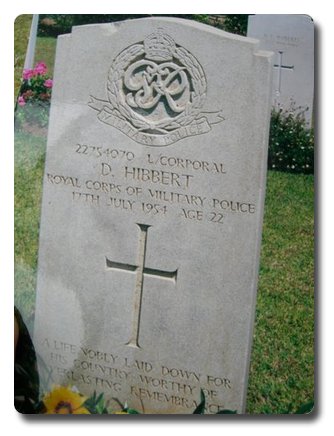 | Notes: | RMP. Died 17/7/1954. Cause of death not known, Fayid. Inscription on gravestone: A life nobly laid down for his country, worthy of everlasting remembrance. Grave Reference.: Plot 35 Row B Grave 22. Born 20/11/1931. Derek Hibbert. |