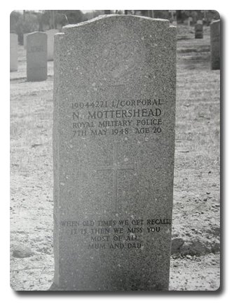 | Notes: | RMP. Died 7/5/1948. Cause of death not known, Cyprus. Age 20. Inscription on gravestone: When old times we often recall it is then we miss you most of all. Mum and Dad. Grave Reference: Plot 16 Row A Grave 1. Born 31/1/1928. Norman Mottershead. |