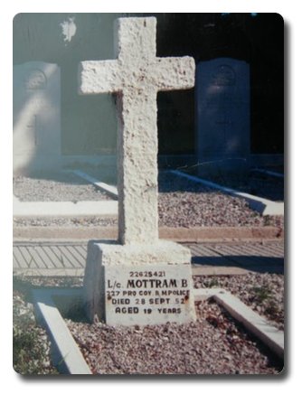 | Notes: | RMP. Died 29/9/1952. Cause of death died following an operation for appendicitis, Trieste. Age 19. Grave Reference: Grave 17. Born 21/5/1933. Barry Arnold Mottram. |